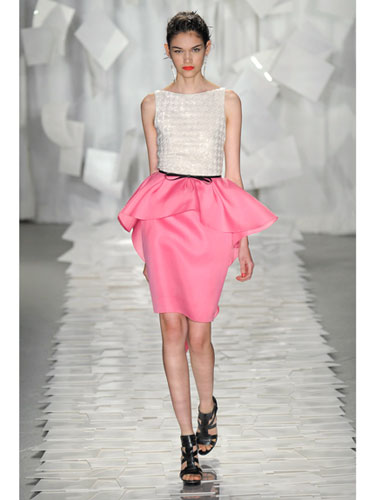 Emerging trends on the runways include flapper inspired fashion, focusing on drop waist silhouettes and sequins from designers such as Gucci and Marc Jacobs; athletic influences with sophisticated cuts from the collections of Narciso Rodriguez, Alexander Wang, and Victoria Beckham; 1950s & 1960s ladylike fashion continue to grace the runways but with more intricate details such as lace from Dolce and Gabbana, Valentino and Nina Ricci. Interestingly enough, bird prints are also popular this season from Carolina Hererra, Kenzo and Jill Stuart.